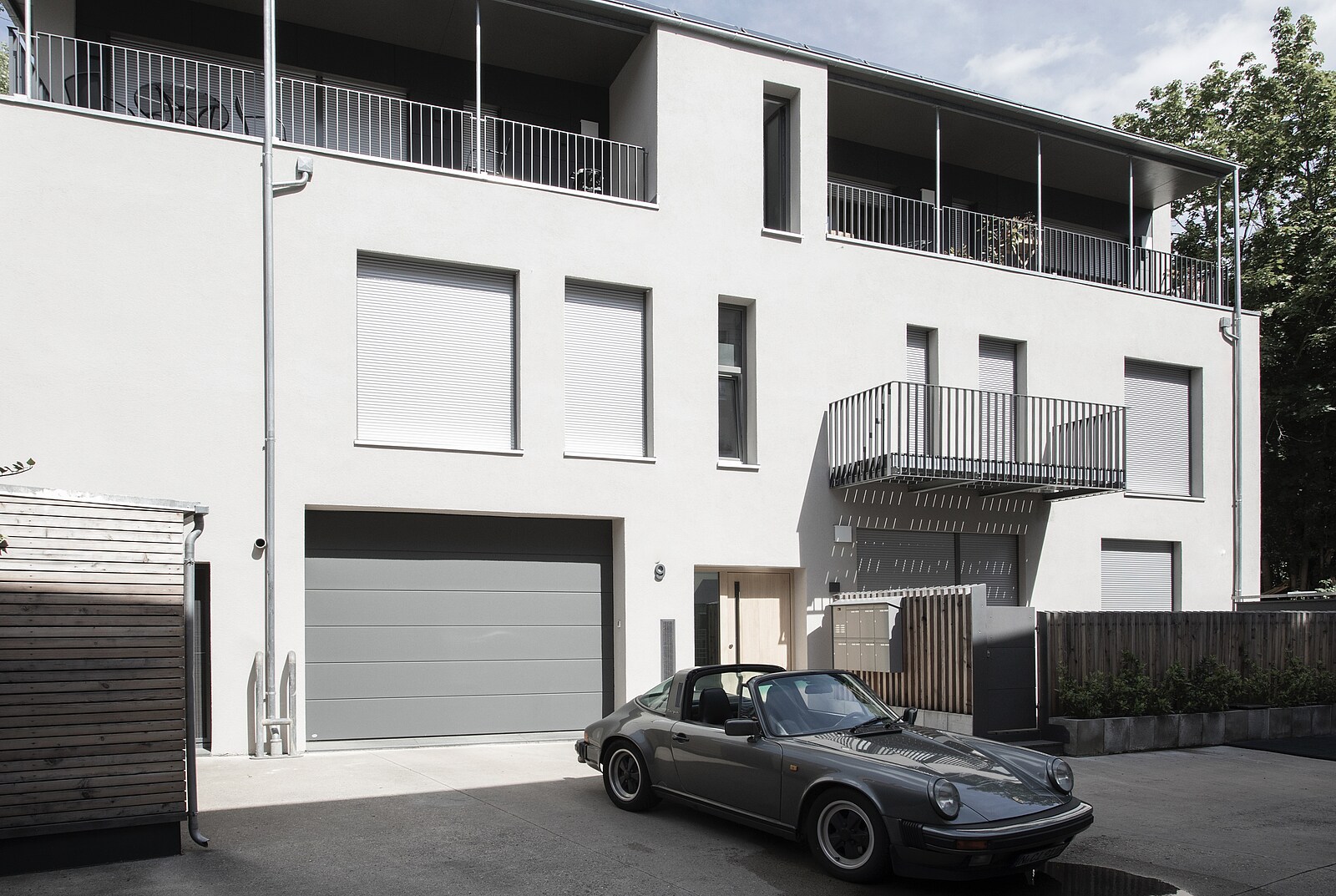Ein bestehendes Gewerbegbäude aus den 50iger Jahren, in der Nürnberger Innenstadt, wurde teilabgebrochen, aufgestockt und umgenutzt. Das dreiseitig an Grundstückgrenzen angrenzende Wohnggebäde wurde, mit 7 Wohnungen und eine Garage für 6 Kfz-Stellplätze umgebaut.